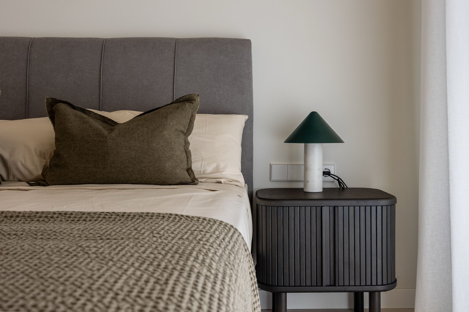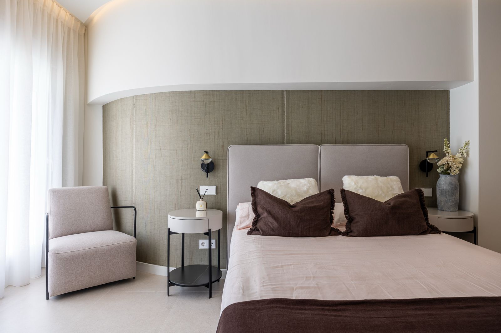- Dormitorios con líneas suaves y una cuidada selección de textiles, pensados para transmitir calma y bienestar.